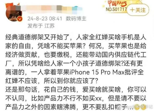 藏匿在ID背后的网友,可以披上“正义”“爱国”的旗帜,站在道德制高点上,肆意地批判、辱骂甚至是引导网暴,只因这位公众人物选择了苹果手机,而非国产手机。