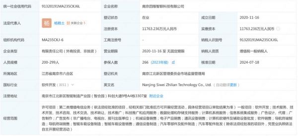 2021年,经过南京江北新区投资,成立南京四维智联科技有限公司。