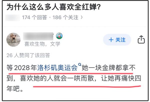 博主诅咒全红婵2028年洛杉矶奥运会颗粒无收