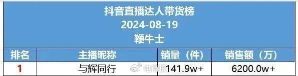 可即便如此,从近期的销售额来看,与辉同行并未受到太大影响,带货成绩非常稳。