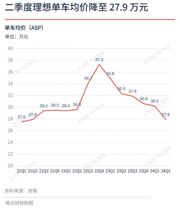 年初纯电 MPV MEGA 表现不及预期后,理想调整销售策略并降价,随着 L6 更大规模的交付,及 4 月全系车型官降约 2 万元,二季度理想销量回升、达到 10.8 万辆,营收同比增长 10.6% 至 317 亿元。不过因价格较低的 L6、L7 销量占比较高,单车均价降至 27.9 万元(不含税)。整车毛利率降至 18.7%。