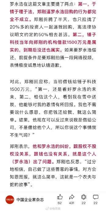 郑刚再回应罗永浩:就算给我1500亿,我也不会拍视频道歉的,(中国企业家)