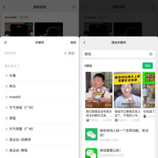 默认的话题标签为用户近期搜过且有更新的关键词,同时也可以通过设置对话题关键词进行添加或删减。