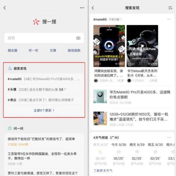 在搜一搜页面新增了一个名为“搜索发现”的板块,位于“问一问”上方。