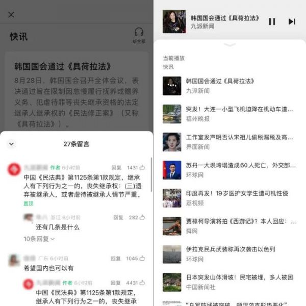 “快讯”板块除了显示封面图和标题以外,点赞/转发/留言等功能按钮会外显,方便快捷互动。同时支持以音频的方式播放全部内容。