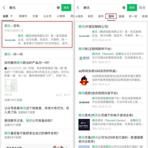同时在搜一搜导航栏中,也新增了名为“百科”的栏目,可用于查找相关词条的百科内容。