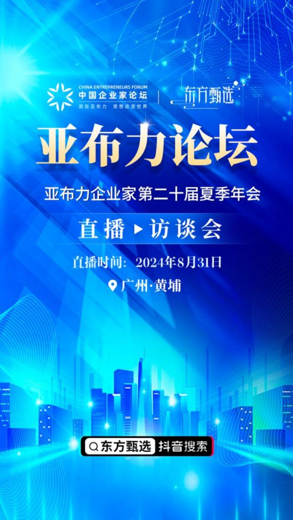 一场深度对话的企业家访谈,即将走进直播间。8月31日,受亚布力中国企业家论坛邀请,直播电商机构东方甄选将前往广州,参加2024亚布力企业家第二十届夏季年会,举办全天直播活动。