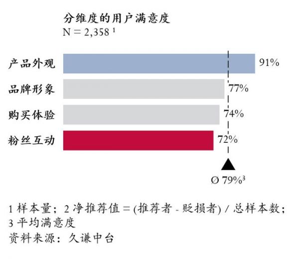 各维度的用户满意度