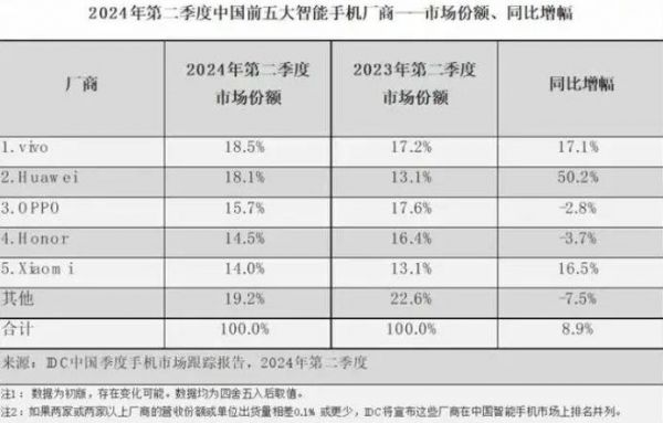 图源:Counterpoint此次IDC上调全年手机出货量,给出的理由则是:“在中国和新兴市场的Android设备强劲增长的推动”,从国外的数据来看,2024年第二季度仅中国市场就出货7158台智能手机,同比增幅达到8.9%,明显超过全球市场增速。