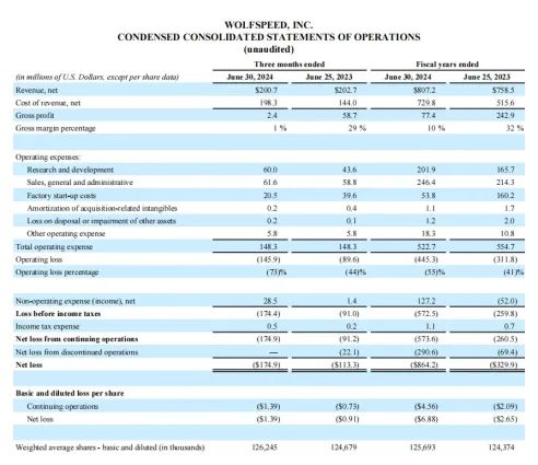 这些对于处于持续亏损状态的Wolfspeed来讲,都可谓是巨大的打击。