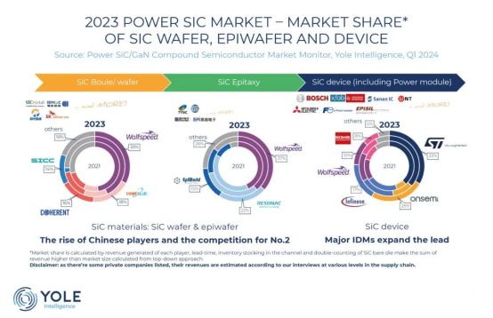 2023年碳化硅各环节市场占比(图源:Yole)