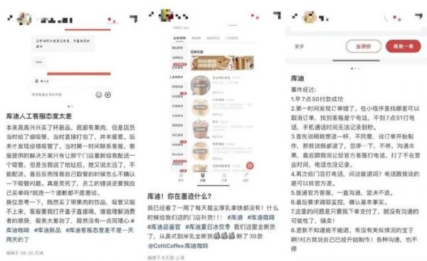 在社交媒体平台上,关于缺货问题,有消费者表示,在他们那的门店,从美式到米乳全断货,断了30款;关于服务的问题,有消费者则吐槽,店员给错了吸管,最后联系门店解决,反被责怪自己取餐的时候怎么不确认一下吸管……
