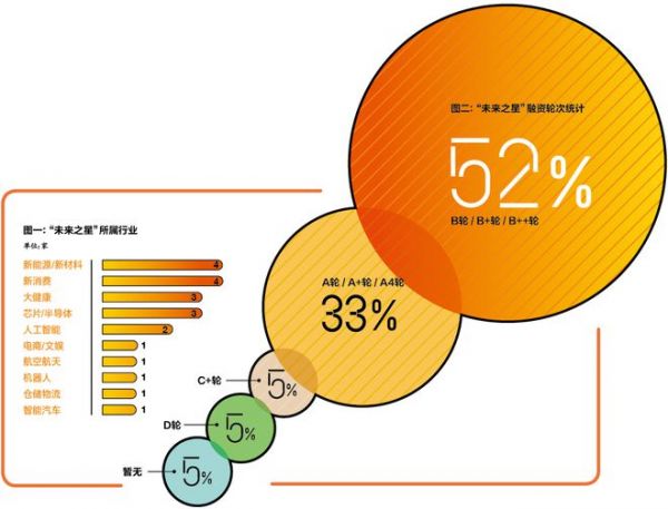 今年的21家“未来之星”,来自12大行业(见图表一),其中新能源/新材料和新消费的公司数量最多,分别有4家。此外,大健康、芯片/半导体,均有3家公司入围,其次是人工智能公司,入围了2家公司。