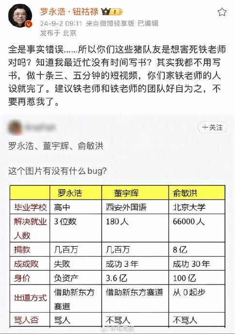 罗永浩怒怼博主将他和董宇辉、俞敏洪对比,全是错误,喊话俞敏洪及其团队别惹他。