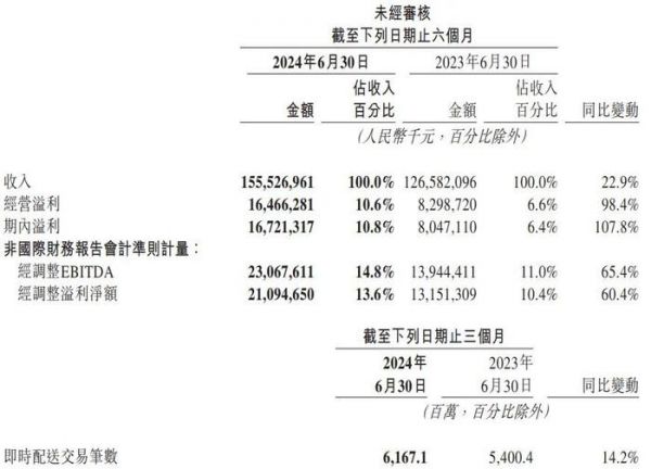 8月28日晚,美团发布了2024年第二季度及今年半年业绩报告。财报显示,短短半年,美团的营收超过1555亿,同比增长22.9%。其中第一季度共计营收732.76亿,第二季度营收822.5亿,均保持了稳定同比增长。