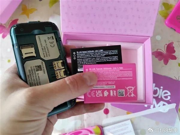 自带粉色电池、粉色替换背壳、芭比贴纸、串珠挂绳、芭比小配饰、粉色清洁布,甚至连充电线也是粉色的。