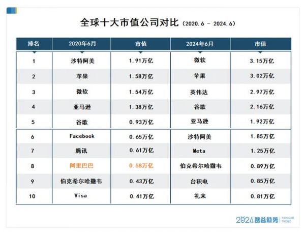 如今三年过去——微软市值翻倍、苹果市值翻倍、谷歌市值翻倍、脸书翻倍,暴涨的英伟达不用说了,连昔日主要竞争对手亚马逊,市值也一度突破2万亿美元。