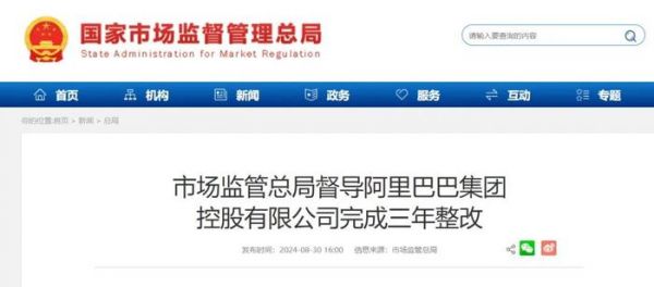 赶在8月最后一个工作日,国家市场监督管理总局发布公告,宣布:阿里巴巴完成三年整改。