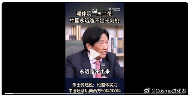 说光刻机就经常有人来问我,说退休院士朱士尧说中国永远做不出光刻机。说实话,我以前没有听过这个人,搜了一下,说点我的感觉: