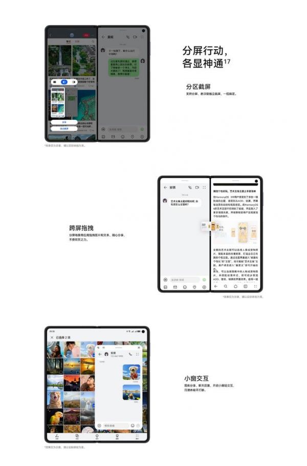 作为折叠屏旗舰,华为Mate X5折叠态薄至11.08mm,展开后更是薄至5.3mm,堪称掌中艺术品,超轻薄四曲折叠机身带来如玉般的丝滑手感,让用户们感受到极致轻薄的用机体验。同时华为Mate X5内屏支持分屏应用、悬浮窗口独立截屏等功能。在通勤路上,打开华为Mate X5,一边屏幕追剧,一边屏幕浏览最新的工作邮件,两不耽误。悬浮小窗轻交互功能让文本分享、图片分享、回复消息等短时交互均能在悬浮小窗内完成,确保视频会议、追剧等长时应用不中断,而当你需要放松时,只需轻轻一折,华为Mate X5秒变6.4英寸直板手机,握感舒适,单手操作得心应手。