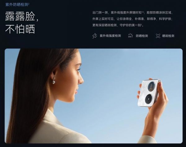 此外,在华为Pocket 2精致灵巧的外形下,隐藏着出色的续航能力,66W有线超级快充和40W无线超级快充则确保了充电过程快速高效。这意味着,即使是“手机瘾”重度用户,也能轻松度过一整天,彻底告别电量焦虑。华为Pocket 2还搭载的第二代超光谱摄像头,具备业界领先的紫外线防晒监测功能。在户外阳光下活动时, 用户能通过手机镜头即可精准检测紫外线强度、晒斑和化学防晒霜的涂抹情况,提醒用户及时采取防护措施,对女生朋友更加友好。