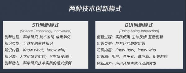 这里就会涉及到两种创新的路径或模式,一种是我们通常认为的从科学研究,到技术发明,再到成果转化的STI创新模式,常常从实验室来,将新的发现和技术投入到生产系统中,无论是晶体管在计算机中的应用,还是mRNA疫苗被应用于全球新冠防御,都在这一条路径上。