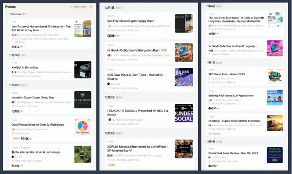 图7 旧金山每天都在举办的AI相关沙龙活动列表。图片来源:https://lu.ma