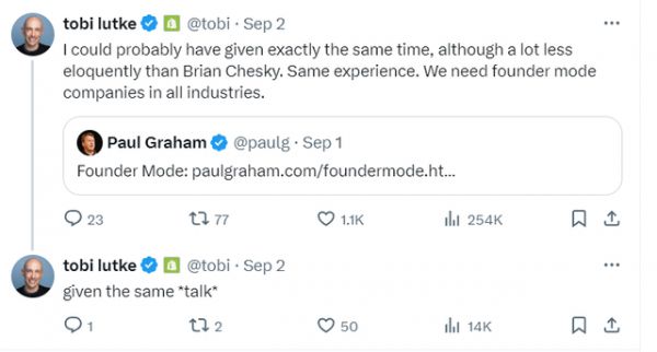 电子商务巨头Shopify创始人Tobias Lütke在X平台发帖,表示自己有同样的遭遇,呼吁“所有行业都该有公司采纳创始人模式”。