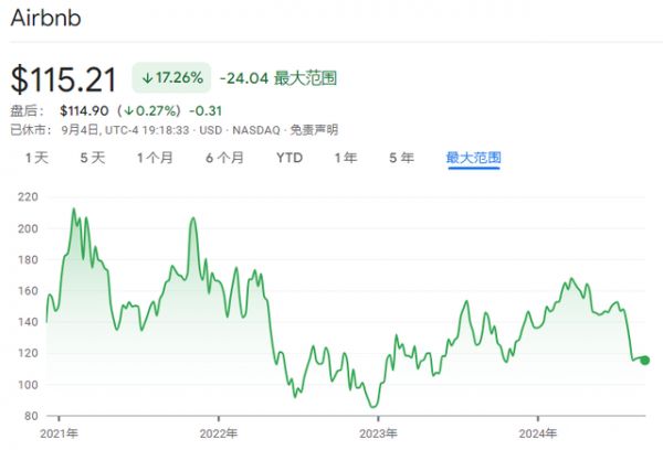 爱彼迎股价自2020年IPO以来已下跌逾17%。