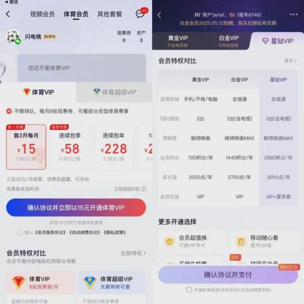 左、右分别为腾讯视频、爱奇艺会员体系。来源:APP截图
