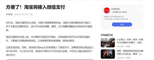确实,从用户角度来看,淘宝和微信支付重新牵手,意味着大家在购物时更加便利。无论是年轻的剁手党,还是日常生活中的小额支付,微信支付的加入让淘宝购物体验更加顺畅。这种变化不仅让用户体验得到了提升,也为未来中国互联网支付领域的发展提供了更多可能性。