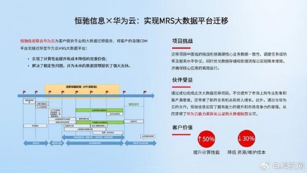 例如上海恒驰信息系统有限公司就选择华为云作为合作伙伴,将自建的 CDH 平台无缝迁移至华为云 MRS 大数据平台,实现了性能提升、成本降低和稳定性加强的三重价值。