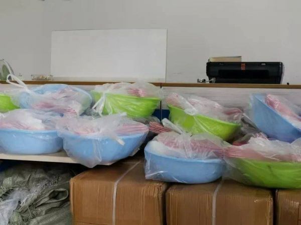 劳务中介免费赠送给富士康求职者的日用品。(界面新闻记者摄)