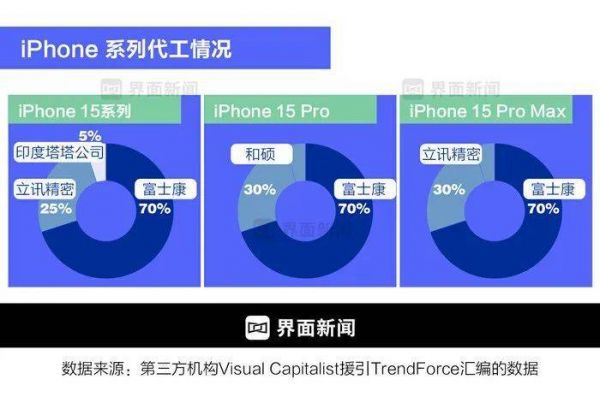 目前,富士康是苹果最大的代工厂。TrendForce数据显示,70%的iPhone 15系列由富士康负责生产组装。