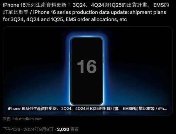 郭明錤:iPhone 16 / Pro 系列今年出货预估8800~8900 万部