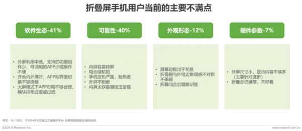 在消费者端,艾瑞咨询9月发布的报告显示,大众对于折叠屏手机的担忧主要包括软件生态、可靠性、外观形态、硬件参数四方面。