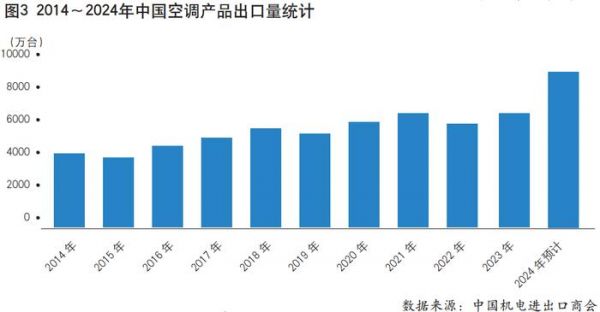 2024冷年,在内销疯狂压货的同时,包括东南亚、拉丁美洲、中东等地区在内的海外市场受高温天气的影响开始全面发力,采购中国空调补入仓库。在世界贸易壁垒愈发严重、地缘危机频发的动荡年代,中国空调出口规模竟然能在连续多年保持正增长之后,于2024冷年进一步呈现出爆发式增长的态势。