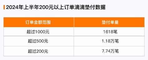 上半年,乘客未支付的网约车订单中,滴滴为司机垫付单笔金额最高的订单为8589.74元,垫付超过1000元的订单1618笔,超过500元订单1.18万笔,超过200元的订单7.74万笔。
