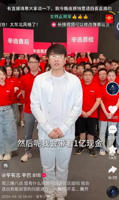9月10日,辛巴曾发布两条预告称,9月11日晚8点自己将组织200名客服和1亿元资金为其他主播提供售后赔付服务,同时将在直播中回答网友提问。