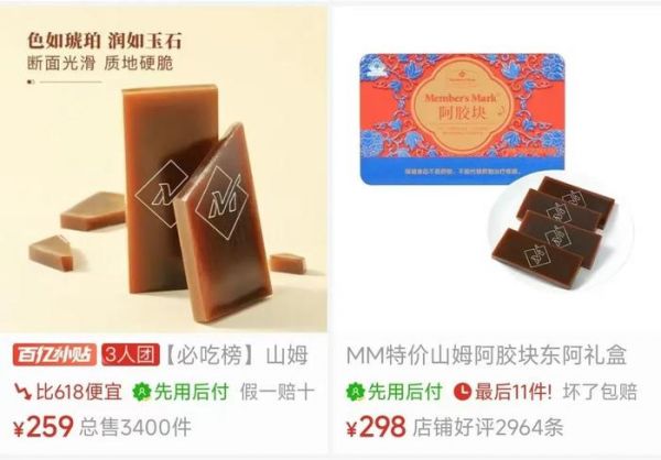 一款阿胶块礼盒,拼多多上仅需259元,而平台自豪地标注全网最低价为368元。