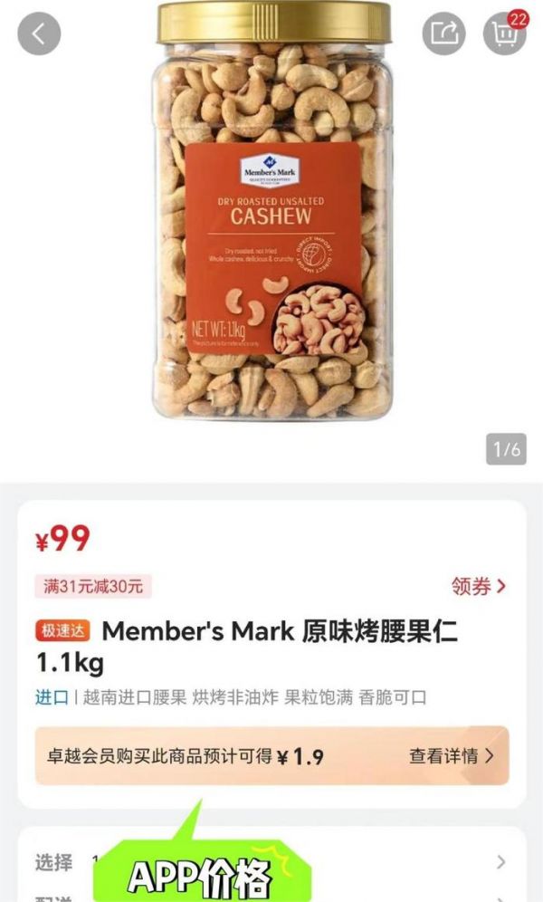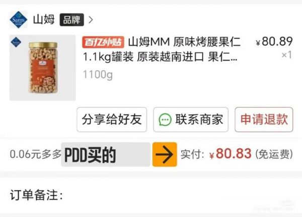 图源:山姆小程序/拼多多同款原味腰果仁,同样的尺寸,拼多多要便宜20%。