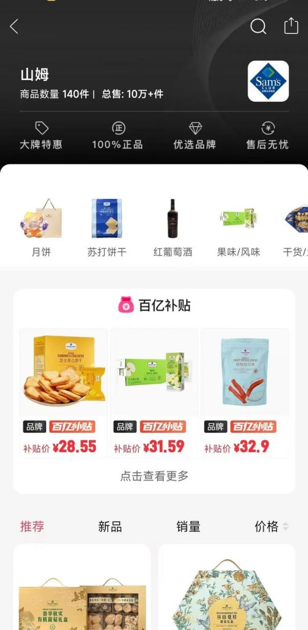 目前来看,拼多多的山姆品牌数量达到140件,总售已经超出10万件了。