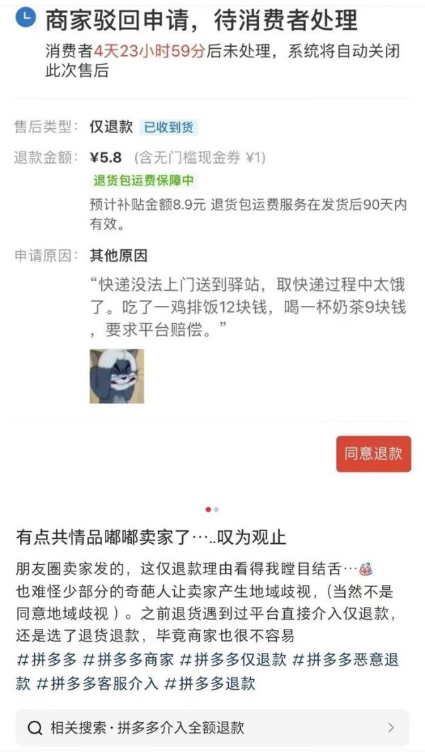 自从出了仅退款,什么样的理由都可以说是见过了。