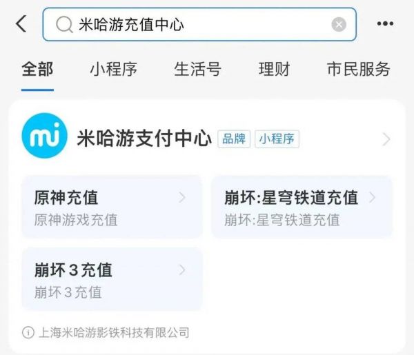 支付宝上的米哈游充值小程序
