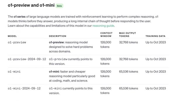 在OpenAI的模型介绍网页上,可以看到o1模型的训练数据截止时间为去年十月份,而最早的Q*项目的爆料,正好大概出现在去年十一月份。