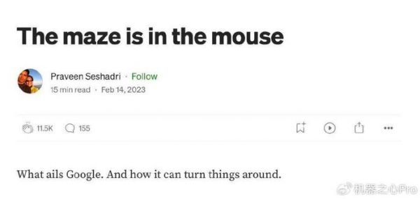 AppSheet 创始人 Praveen Seshadri 宣布离开谷歌,他的博客称,公司已迷失方向,员工被困在系统里。