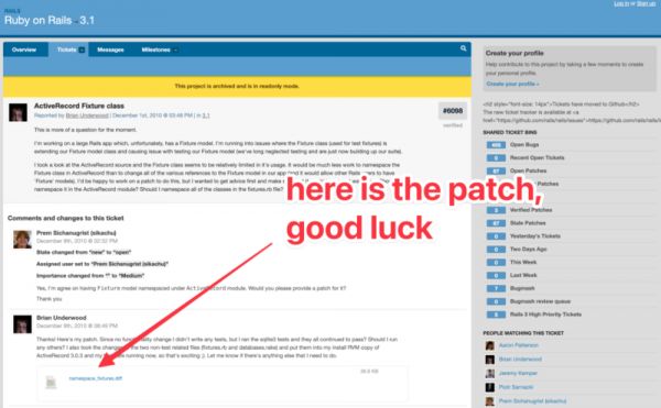 下面是早期提交给 Rails 项目的补丁的 3 个不同版本的示例。