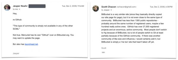 很高兴 Jesper 并没有因为我的回应而生气,现在想起来我那时候语气确实有点冲。但最后证明,Jesper 其实是 BitBucket 的创始人。这真的很尴尬。