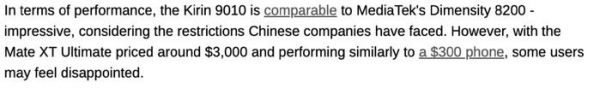 首先,外媒在华为的发布会上,借助实机体验确认了一个关键细节:Mate XT Ultimate 搭载的是麒麟 9010芯片。根据外媒的评价,这款芯片在性能上可以与联发科的天玑 8200相媲美。要知道,在当前全球范围内技术和贸易限制重重的情况下,华为还能推出这样的芯片,的确是一个了不起的成就。然而,外媒也并非全是好评。他们提到,尽管这款手机性能不错,但定价却高达3000 美元,而实际表现却和价格相差悬殊,甚至被认为与300 美元的手机性能相当。这一对比难免让部分用户感到失望。