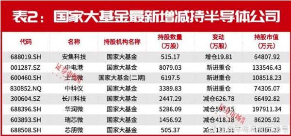 截至今年二季度末的最新持仓显示,国家大基金在二季度期间又新进重仓了多只相关个股。